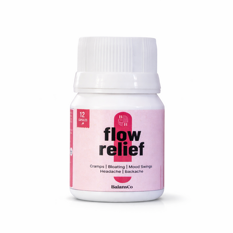 Flow Relief+ is an Ayurvedic, plant-based formulation designed to naturally ease menstrual cramps, bloating, fatigue, and mood swings, helping you flow through your period with comfort and calm.