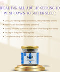 It works by calming the nervous system and reducing stress hormones like cortisol. Herbs help your mind and body unwind naturally, promoting deep, restorative sleep.